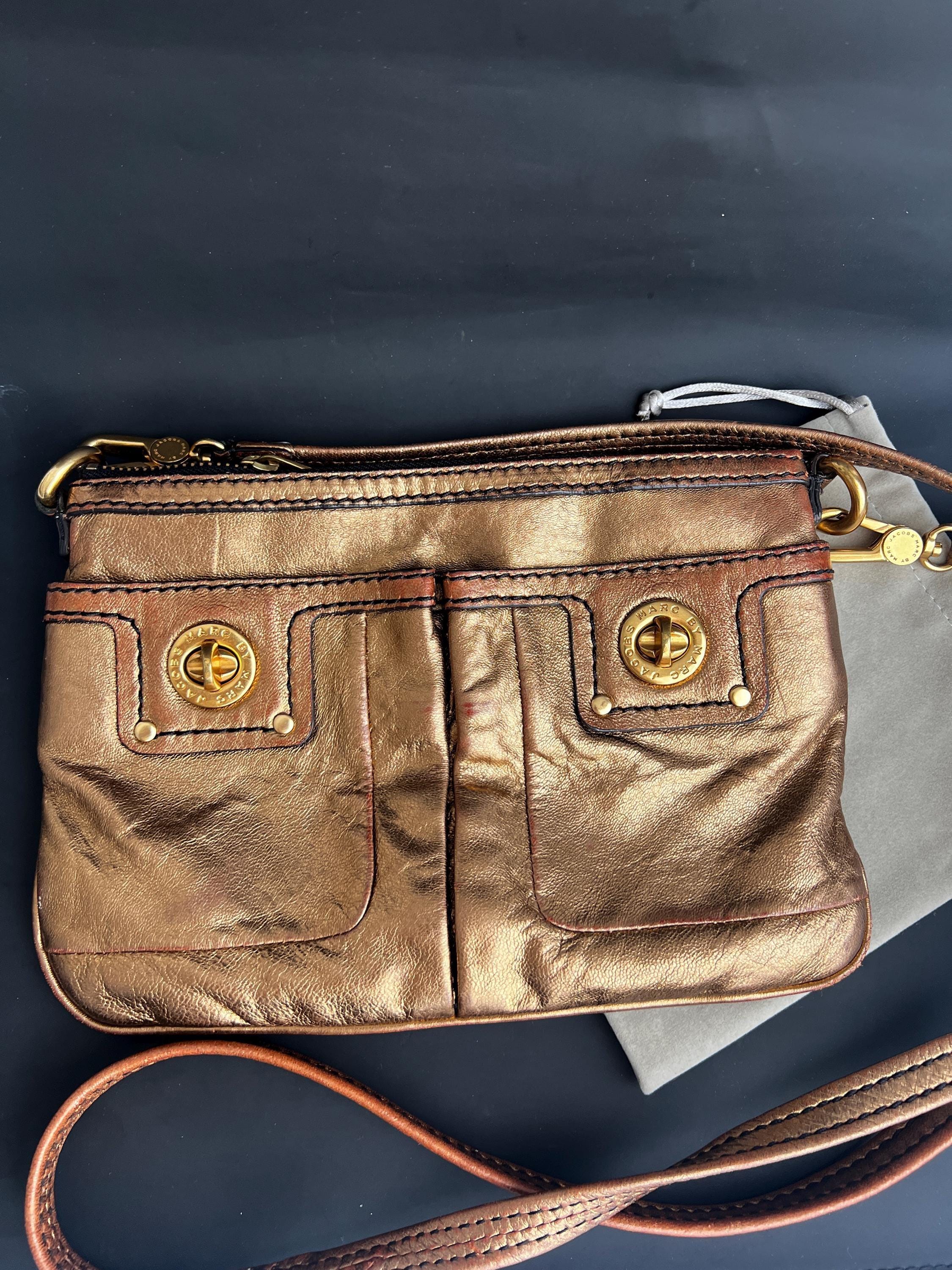 "Marc by Marc Jacobs Gold Leather Crossbody Bag 9.5\" width, 6ю5\" height, 1 1/...