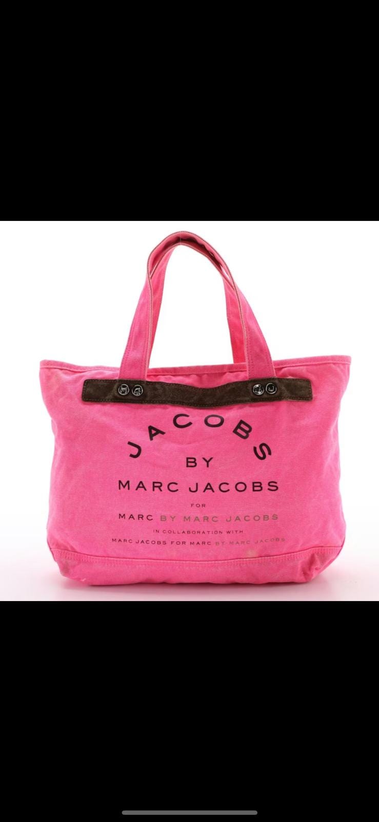 Jacobs by Marc Jacobs Neon Pink Canvas Shoulder Tote with Brown Sue...