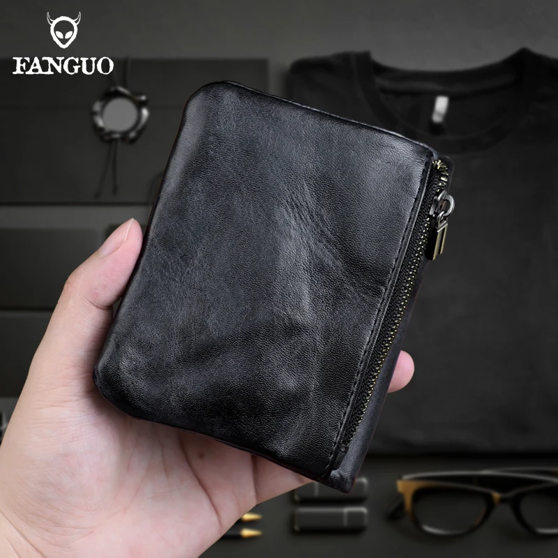 men wallet Genuine Leather Wallets For Men zipper Purse Vertical Business Wallets RFID anti-theft Cr...