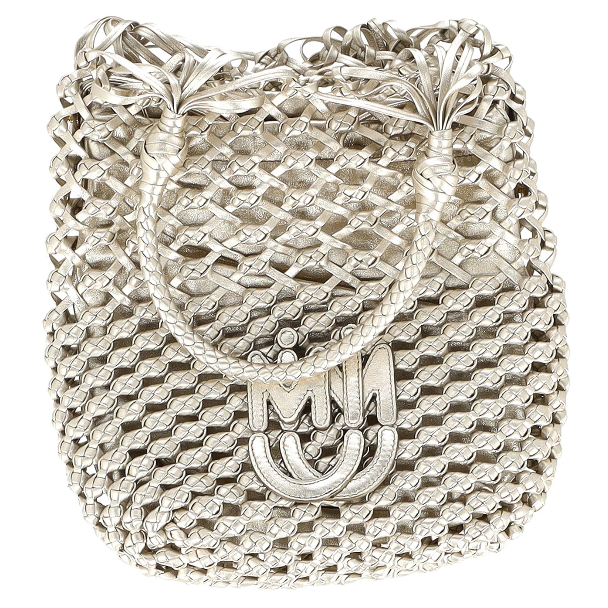 VINTAGE, RRP AS NEW Make a bold statement with the Miu Miu Weave Effect Tote Bag in Silver Leather. ...