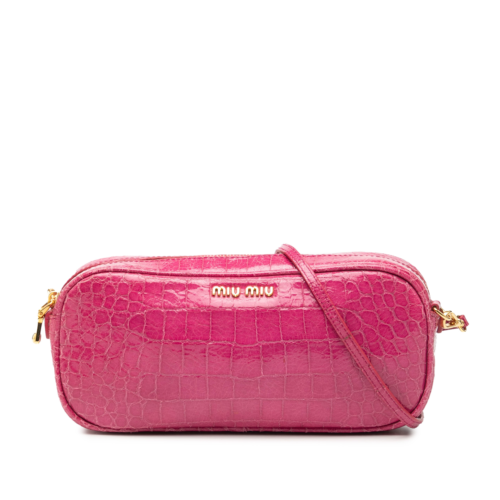 Miu Miu Womens Pre-owned Croc Embossed Patent Crossbody - Fuschia L...