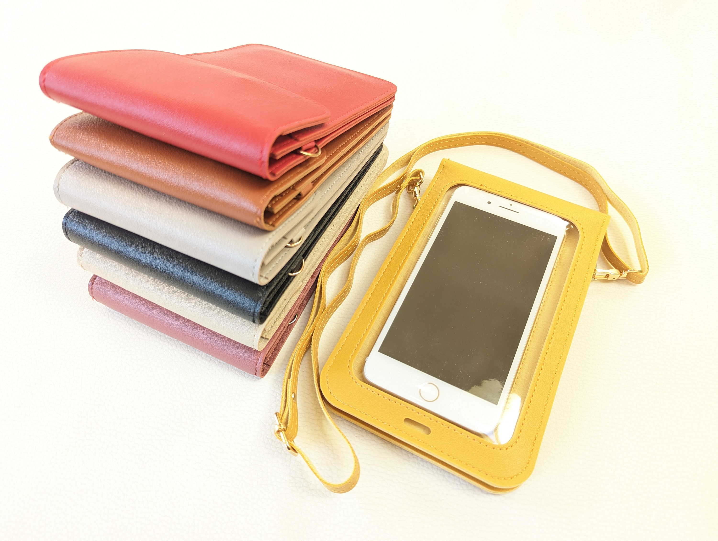 Slim Vegan Leather Mobile Phone Bag with Clear Touchscreen Window and Adjustable Shoulder Strap This...