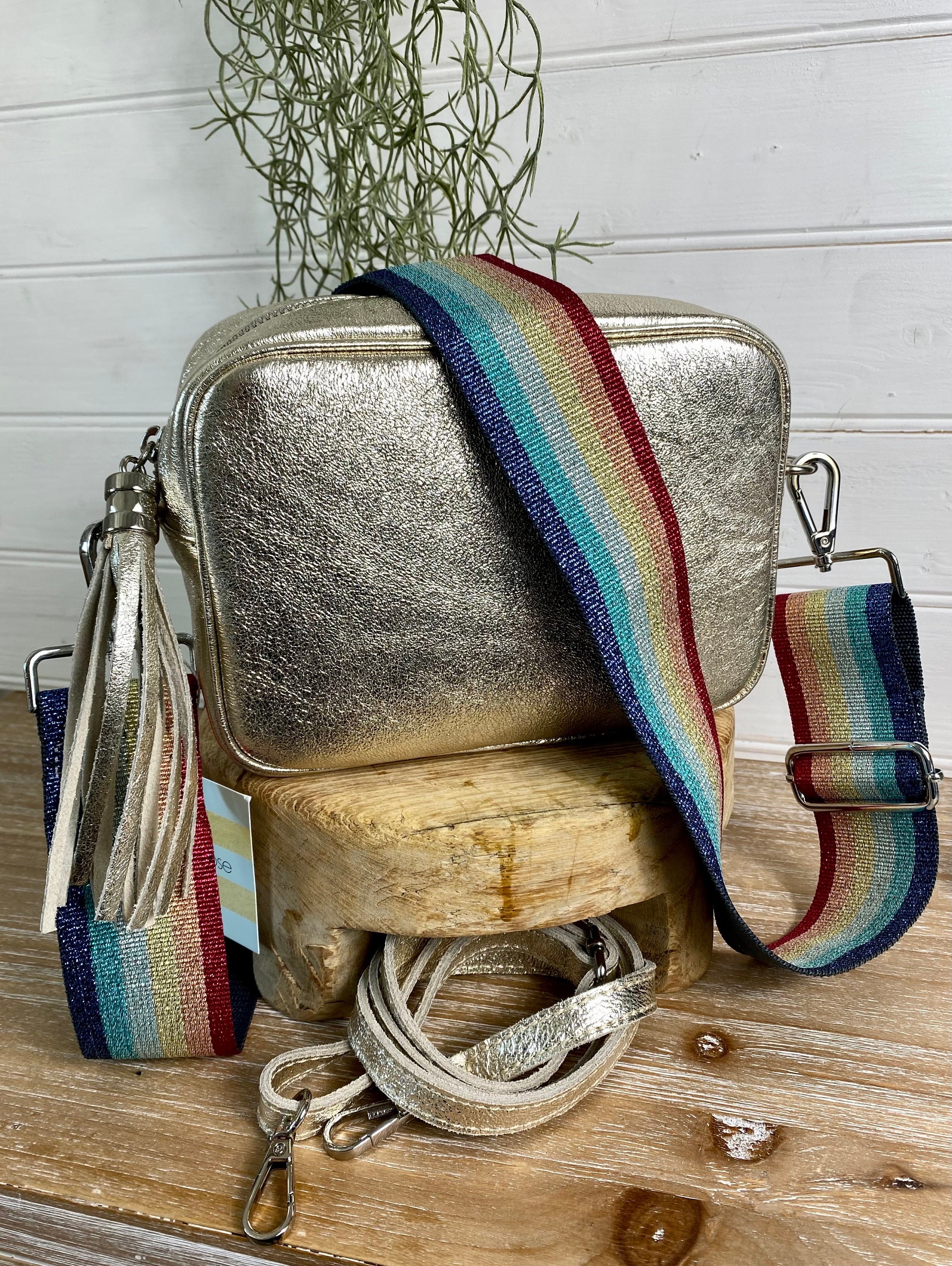 Gold Crossbody Bag, Gold Leather Cross Body Bag, Gold Tassel Bag, G...