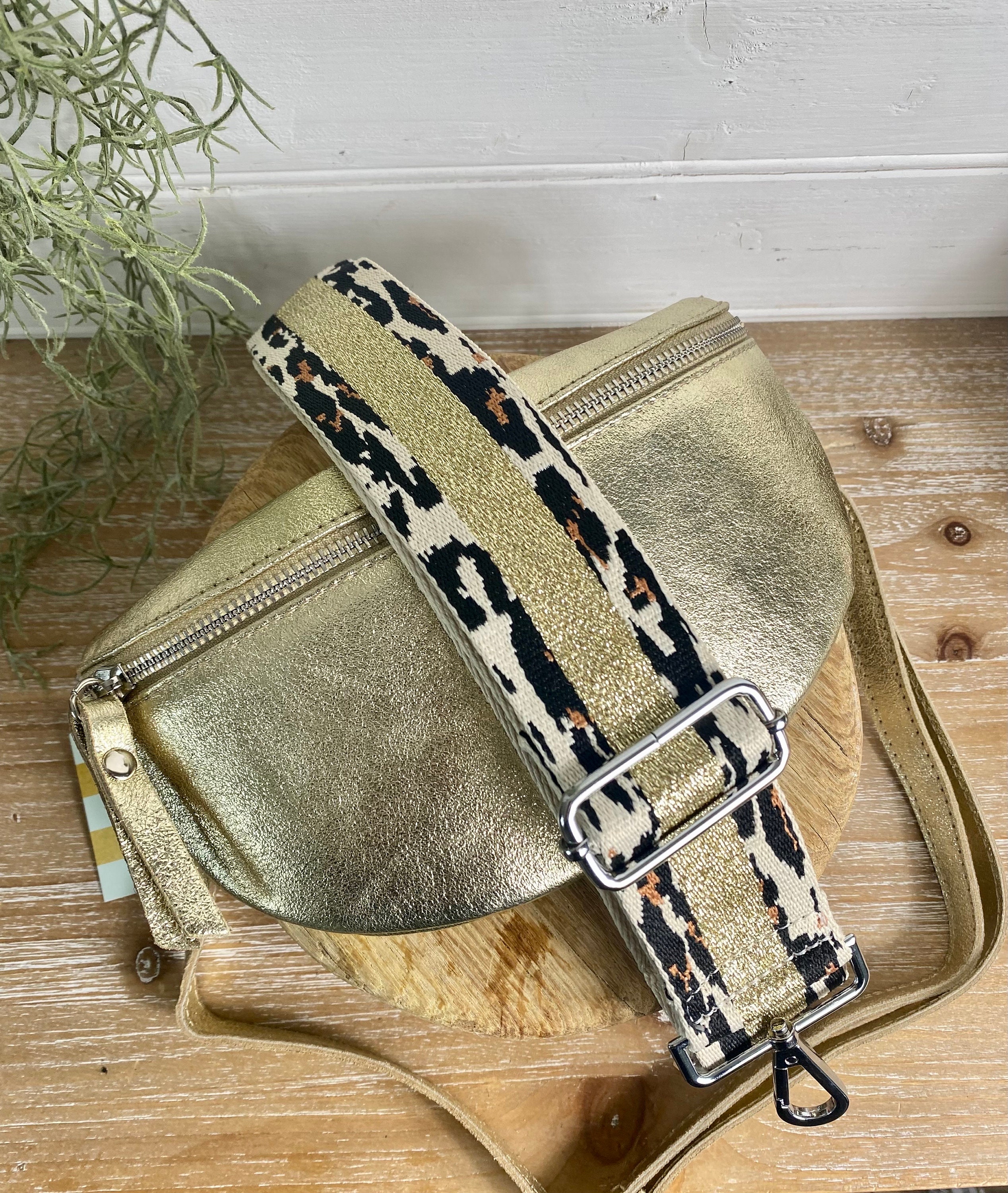 "Gold Bum Bag, Chest Bag, Cross Body Bag. These beautiful quality real Cow leather bags are so ...