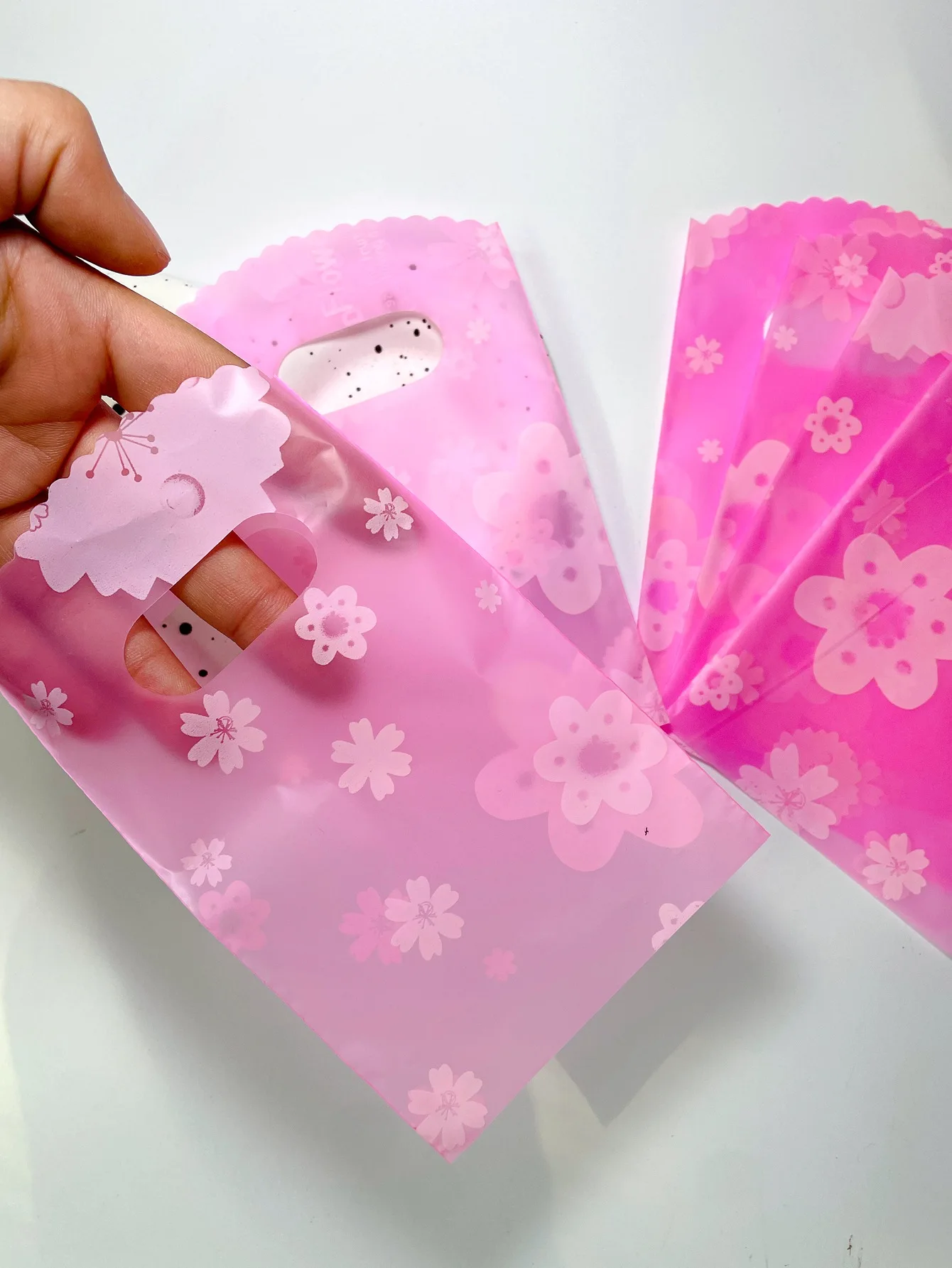 50pcs Pink Flower Pattern Jewelry Packaging Bag, Small Ear Studs Small Hair Decoration Shopping Bag,...