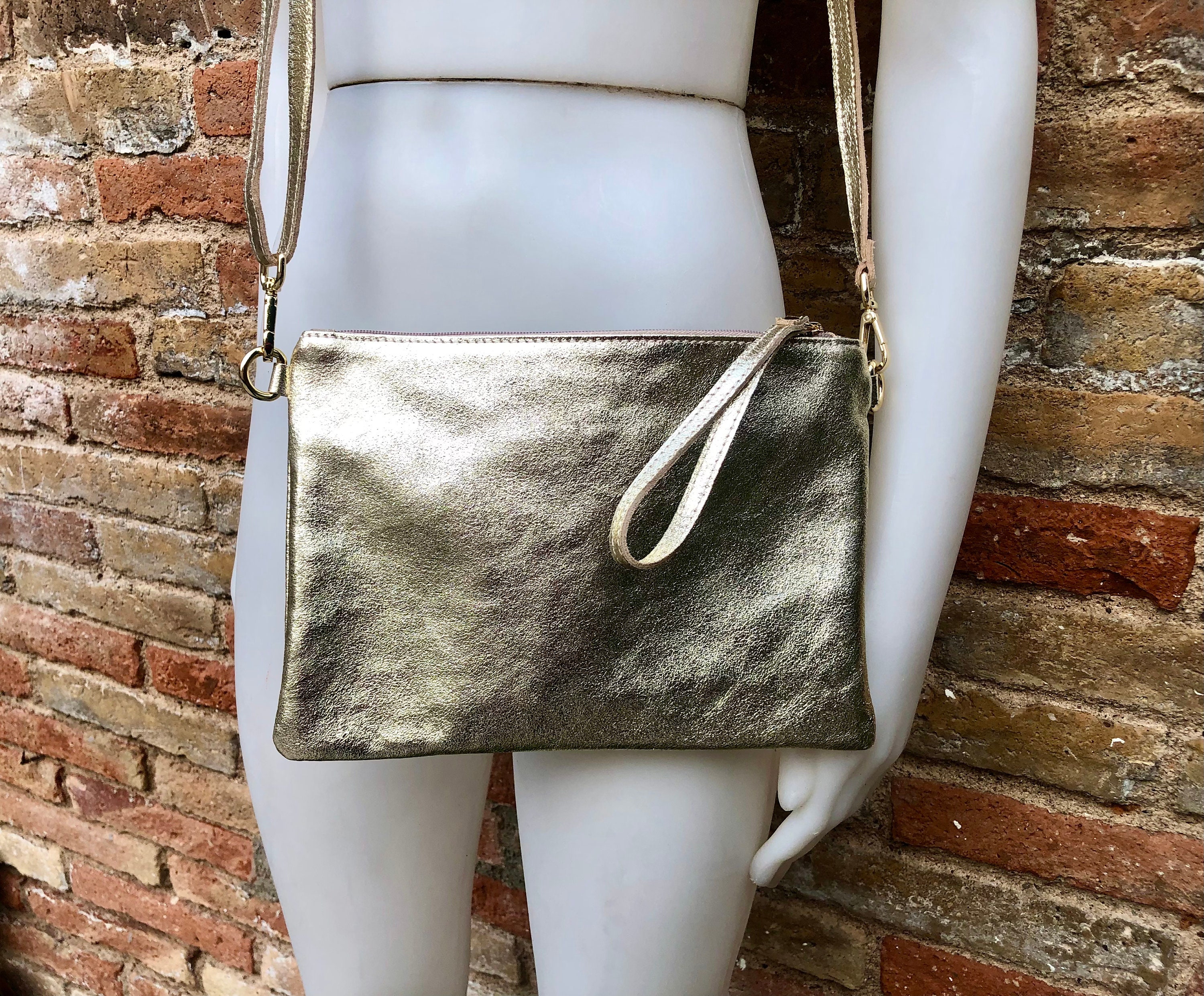 Small leather bag in GOLD .Cross body bag, shoulder bag or wristlet...