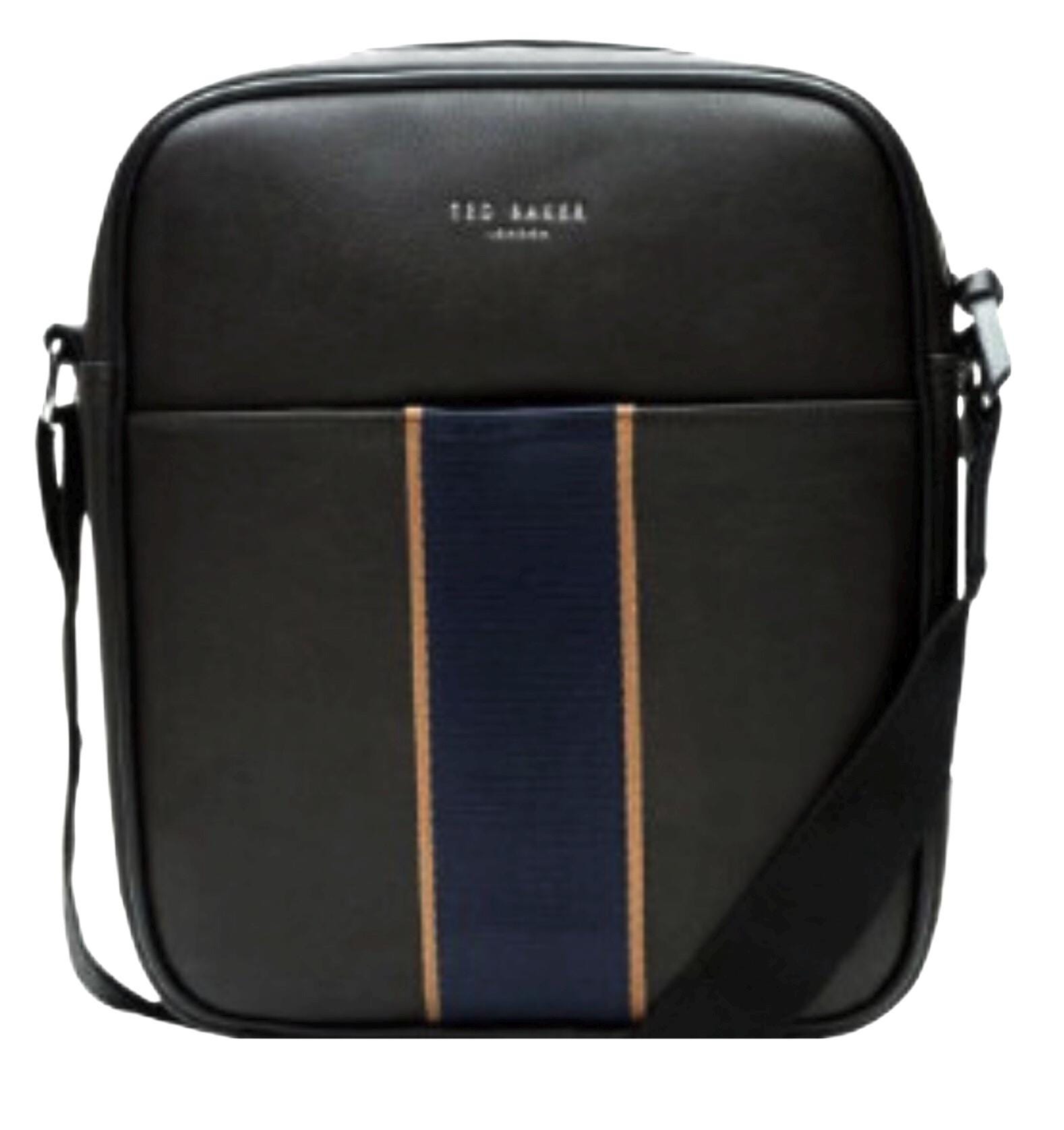 Mens Ted Baker Evver Striped PU Flight Bag in brown.- Adjustable shoulder strap.- Zip fastening.- St...