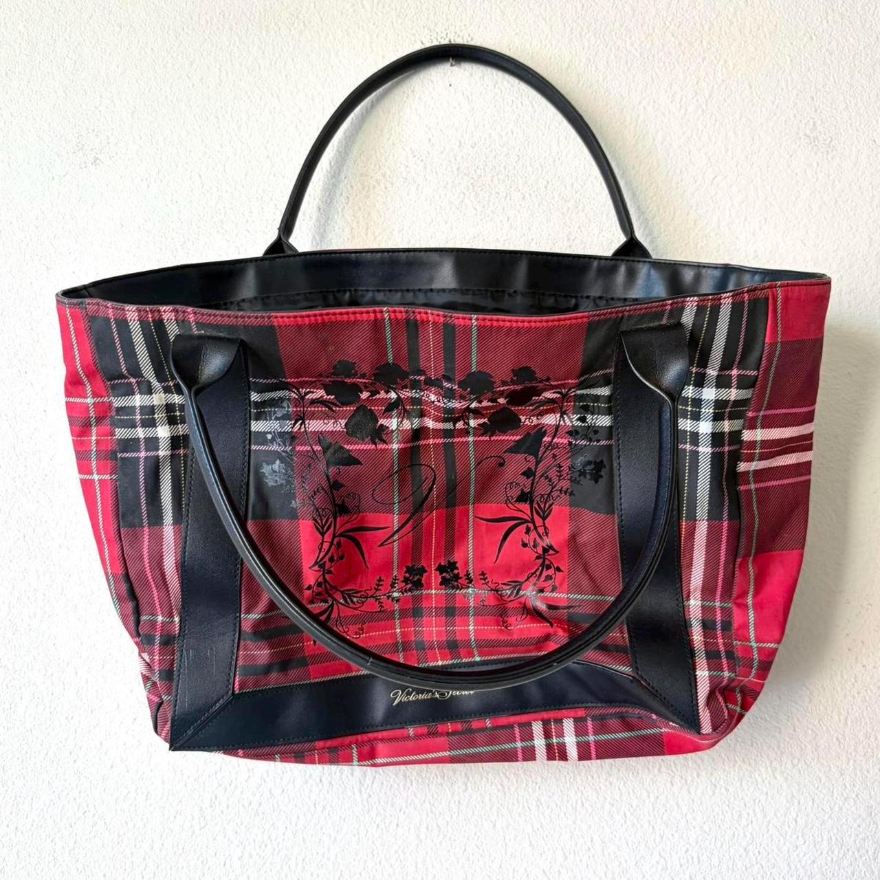 Victoria's Secret Black Red Tartan Plaid Tote Bag
