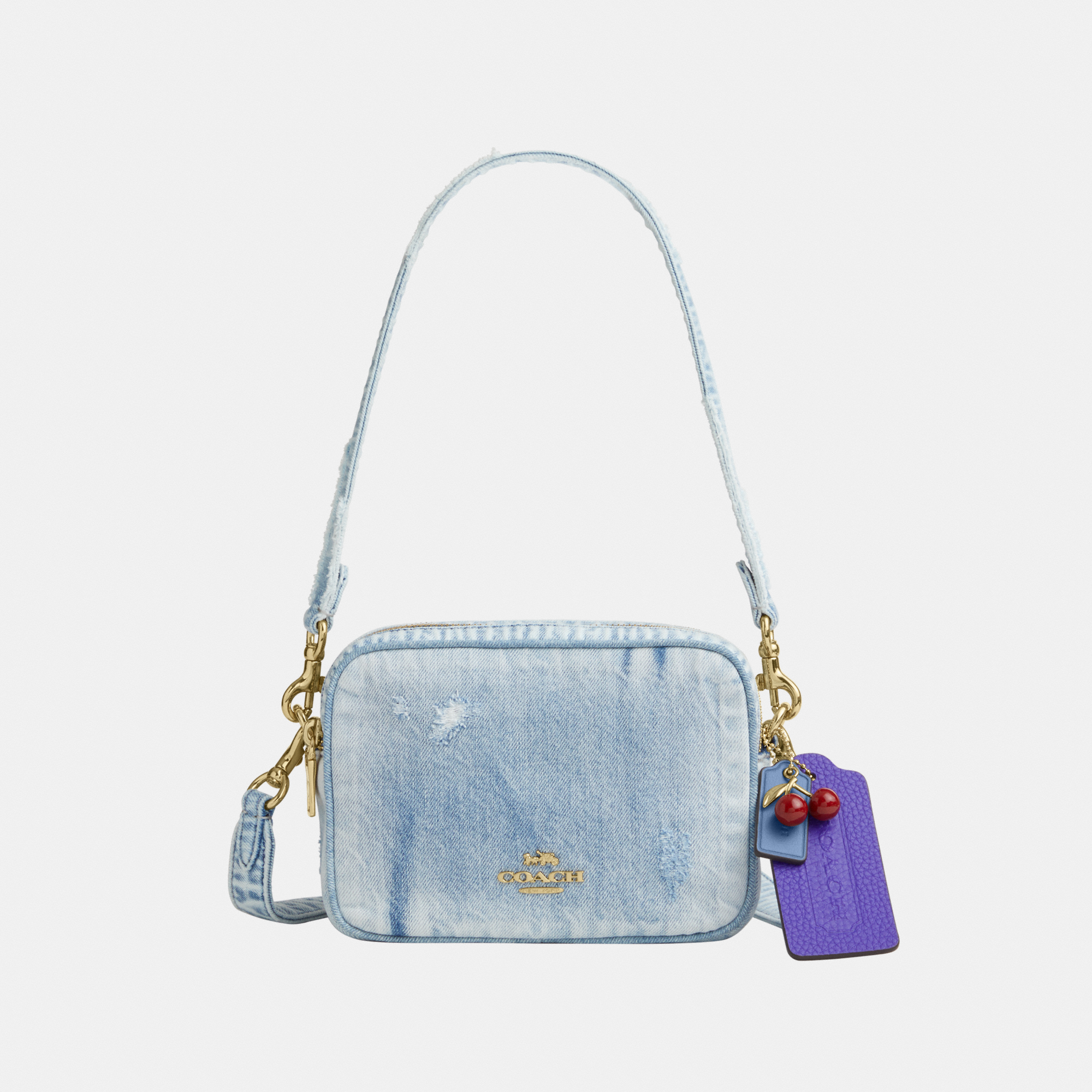 Coach Womens Mini Carey Crossbody Bag In Loved Denim With Charms - ...