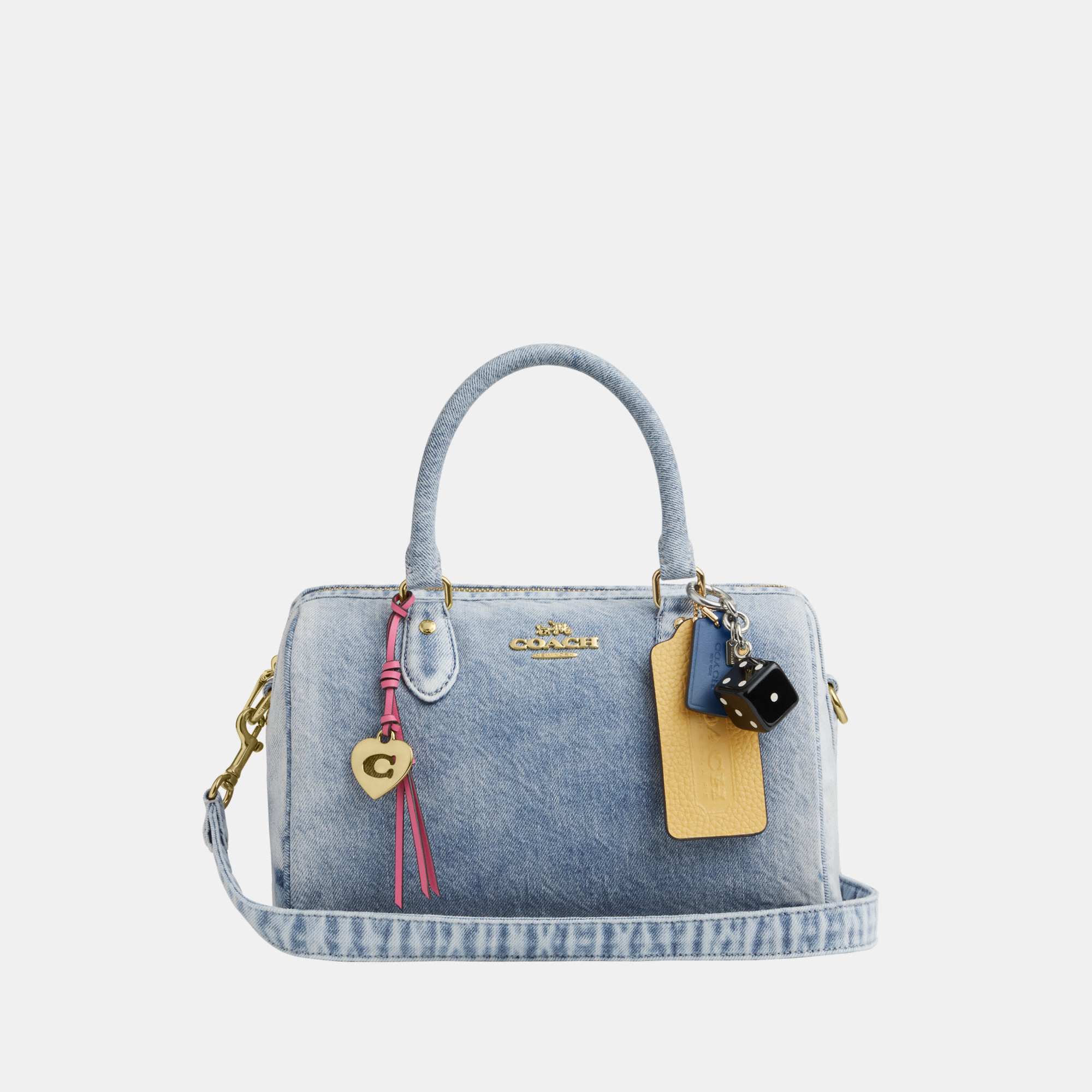 Coach Womens Mini Rowan Crossbody Bag In Loved Denim With Charms - ...