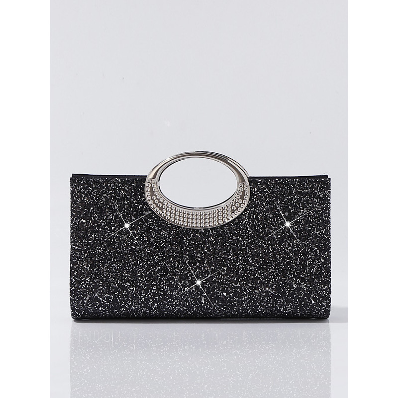 Women's Glitter Silver Gold Evening Clutch Bag with Metallic Ring H...