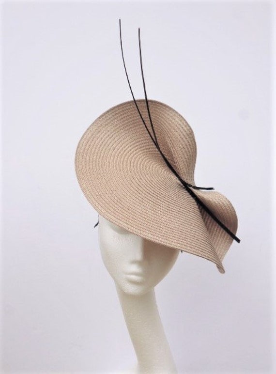Natural beige saucer disc hat, Beige Kentucky Derby fascinator hat,...
