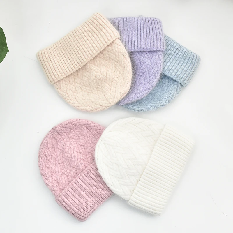 Wholesale Soft Warm Colorful Angora Rabbit Fur Knitted Beanie Hat C...