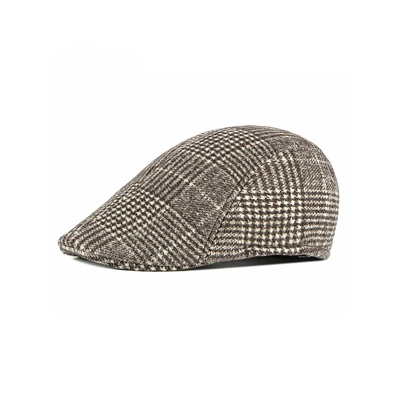 Men's Polyester Blend Checkered Beret Cap - Vintage British Style, ...