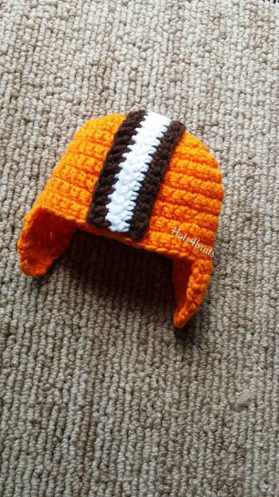 "Cleveland Browns colored helmet style crochet hat. You can choose from the ear flap with the b...
