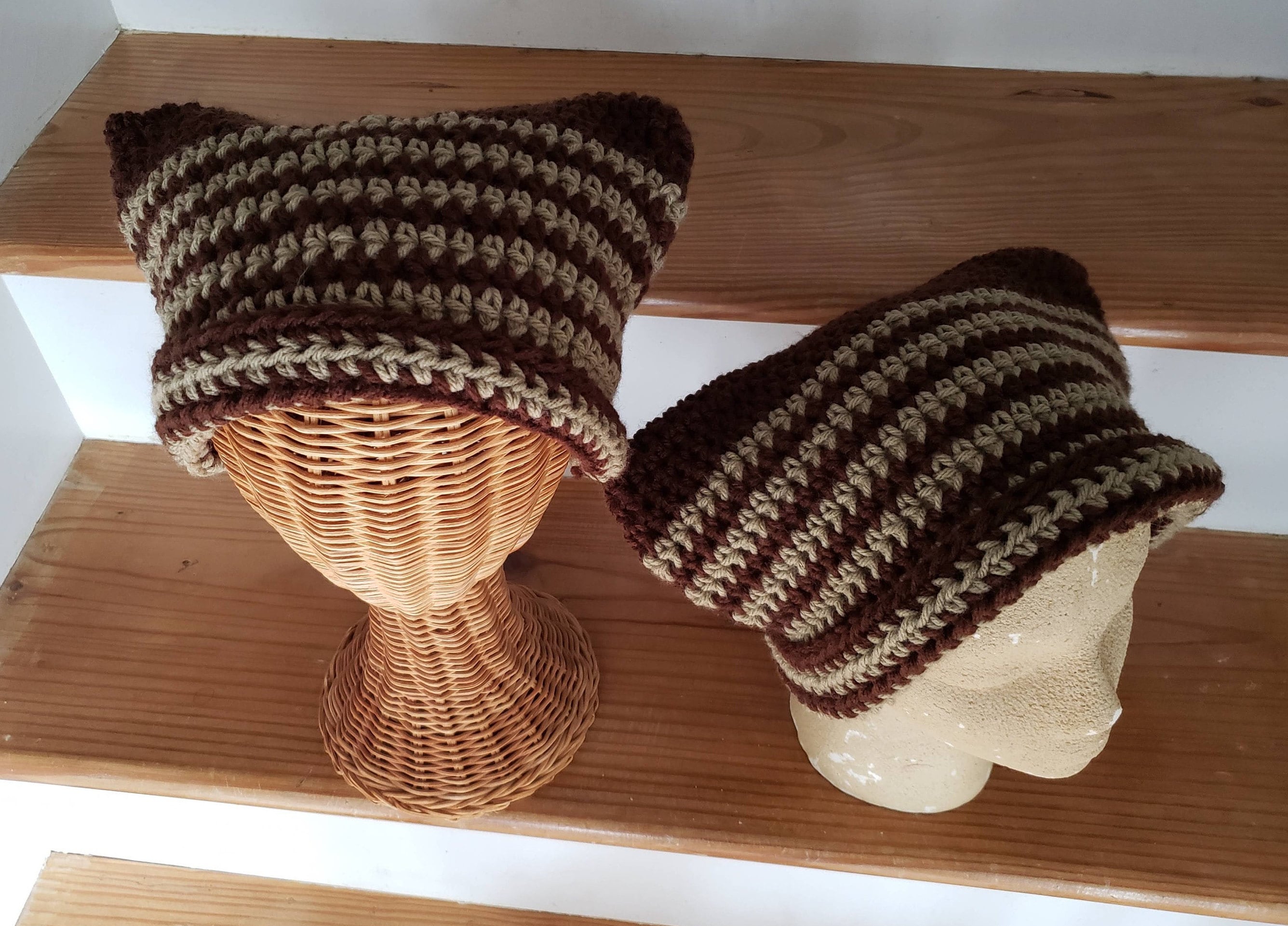 Cat Hat, Brown Striped Cat Ear Beanie, Brown/Taupe Kitty Hat, Brown...