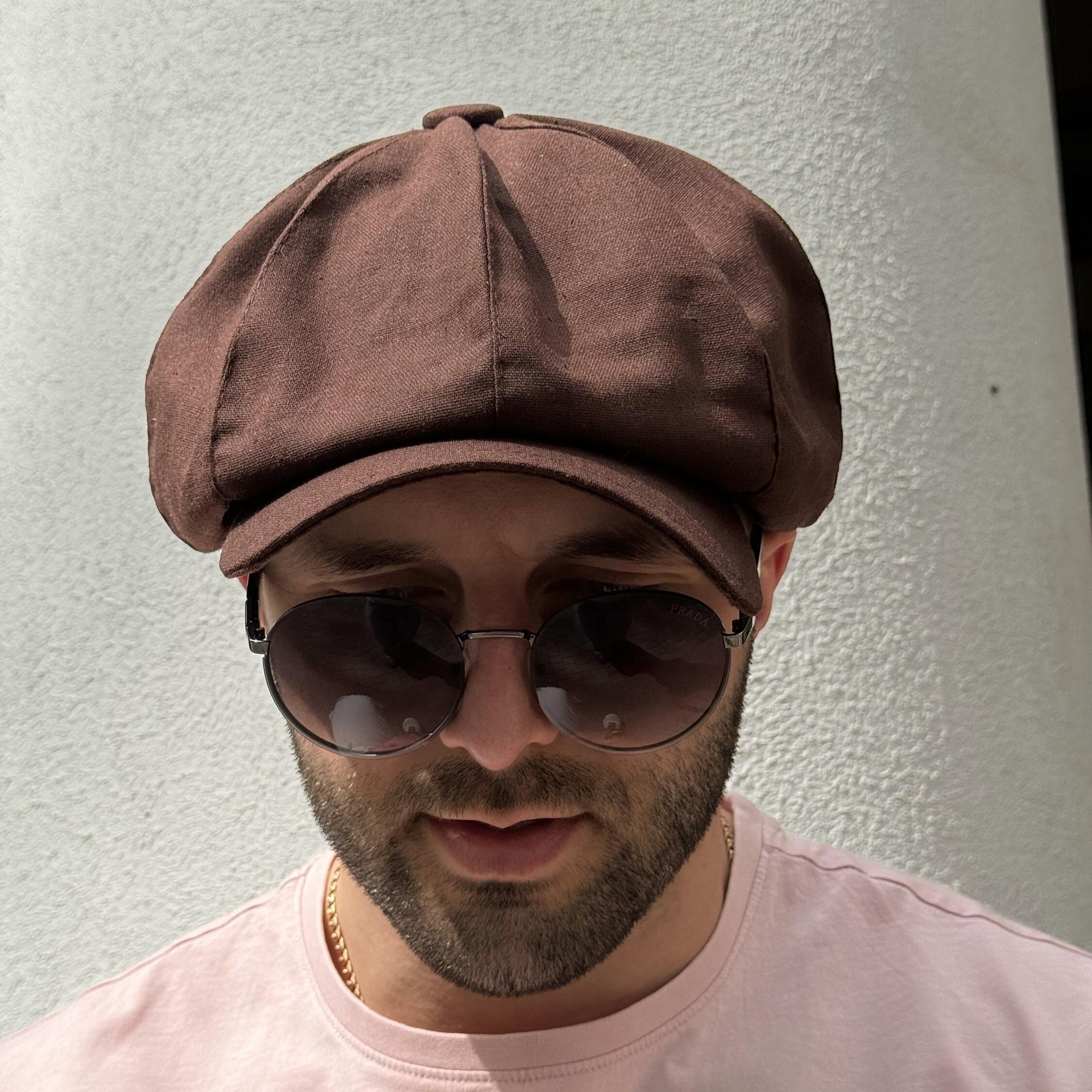 Brown summer linen cap,linen newsboy cap man,brown applejack hat,Pe...