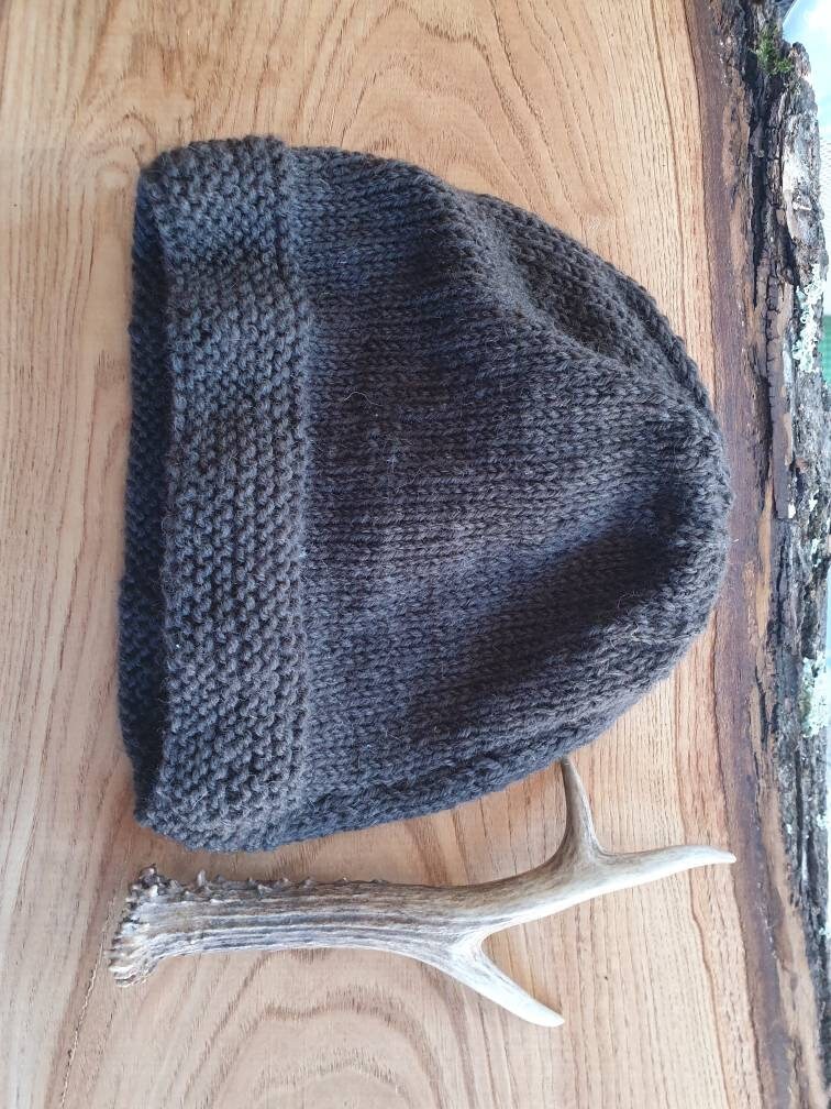 Brown knitted hat, simple knitted man hat, brown knitted hat, knitt...