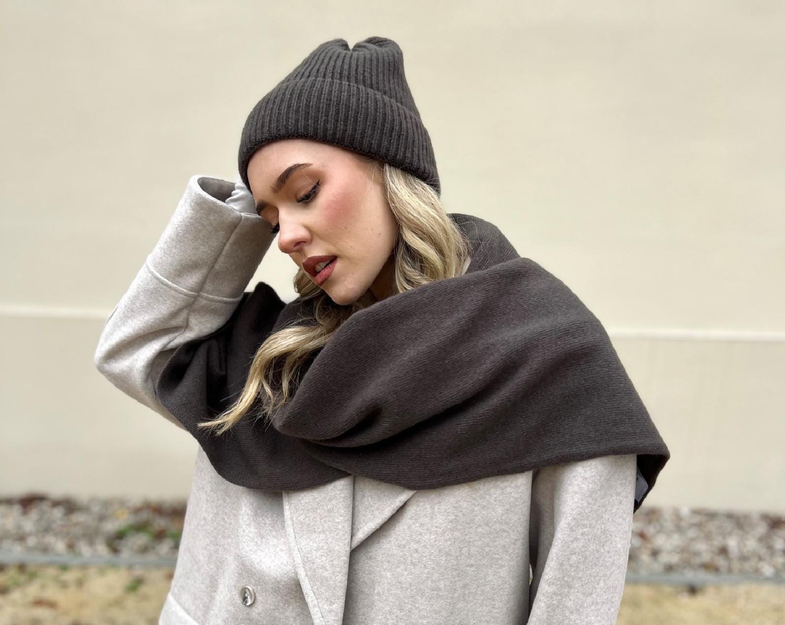 Wool cashmere ribbed hat and scarf set in brown, brown cashmere win...