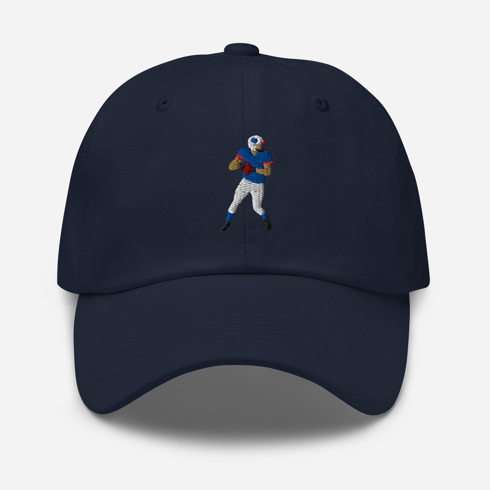 "Bring the cold-weather grit and big-arm energy with this Blue & White Quarterback dad hat,...