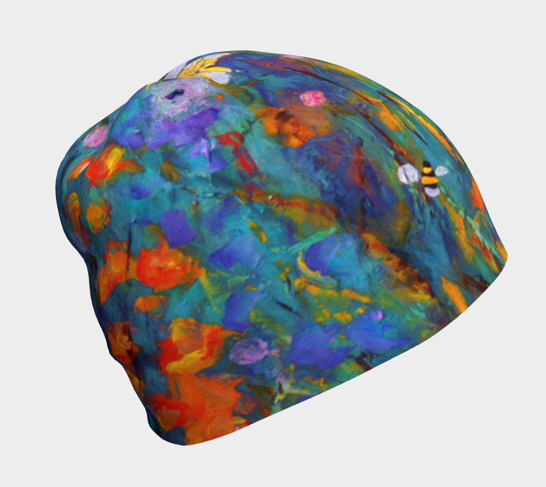 "Soft Bamboo Beanie Hat for Women with feminine floral art from my original watercolor painting...