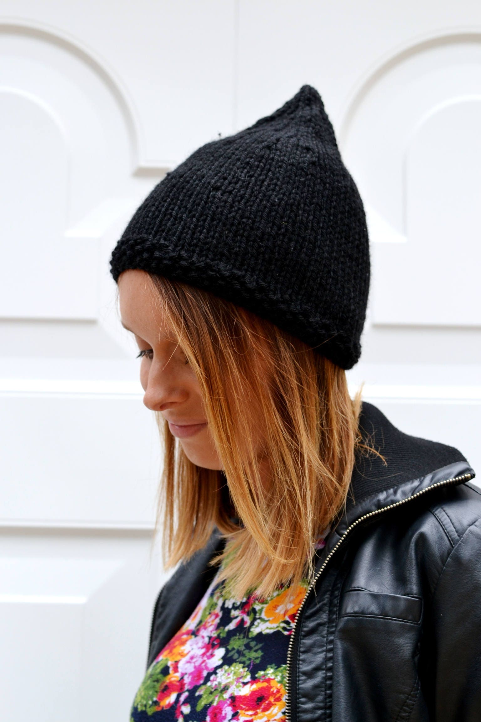 Womens Black Pixie Hat Festival Hat Uk Hats Chunky Knit Knit Hat Gn...