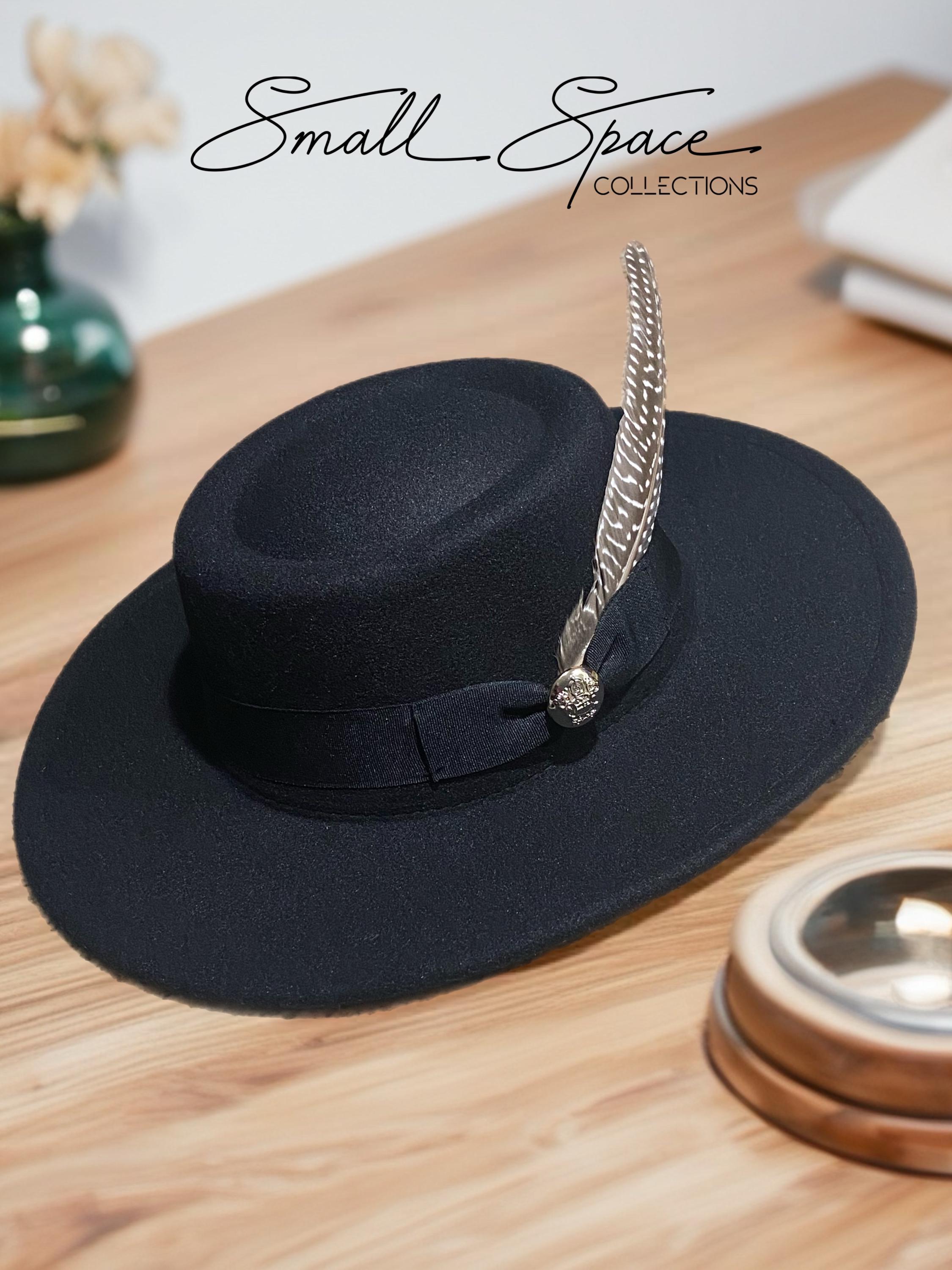 Black Wild Brim Felt Hat with Feather | Unisex Hat For Men and Wome...