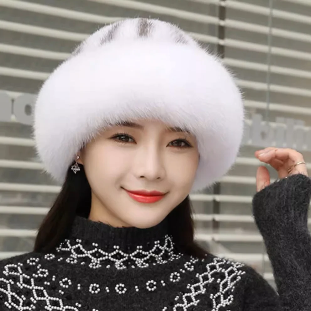 MWFur Winter Natural Mink Fur Hat Head Warmer Round Real Mink Fur H...
