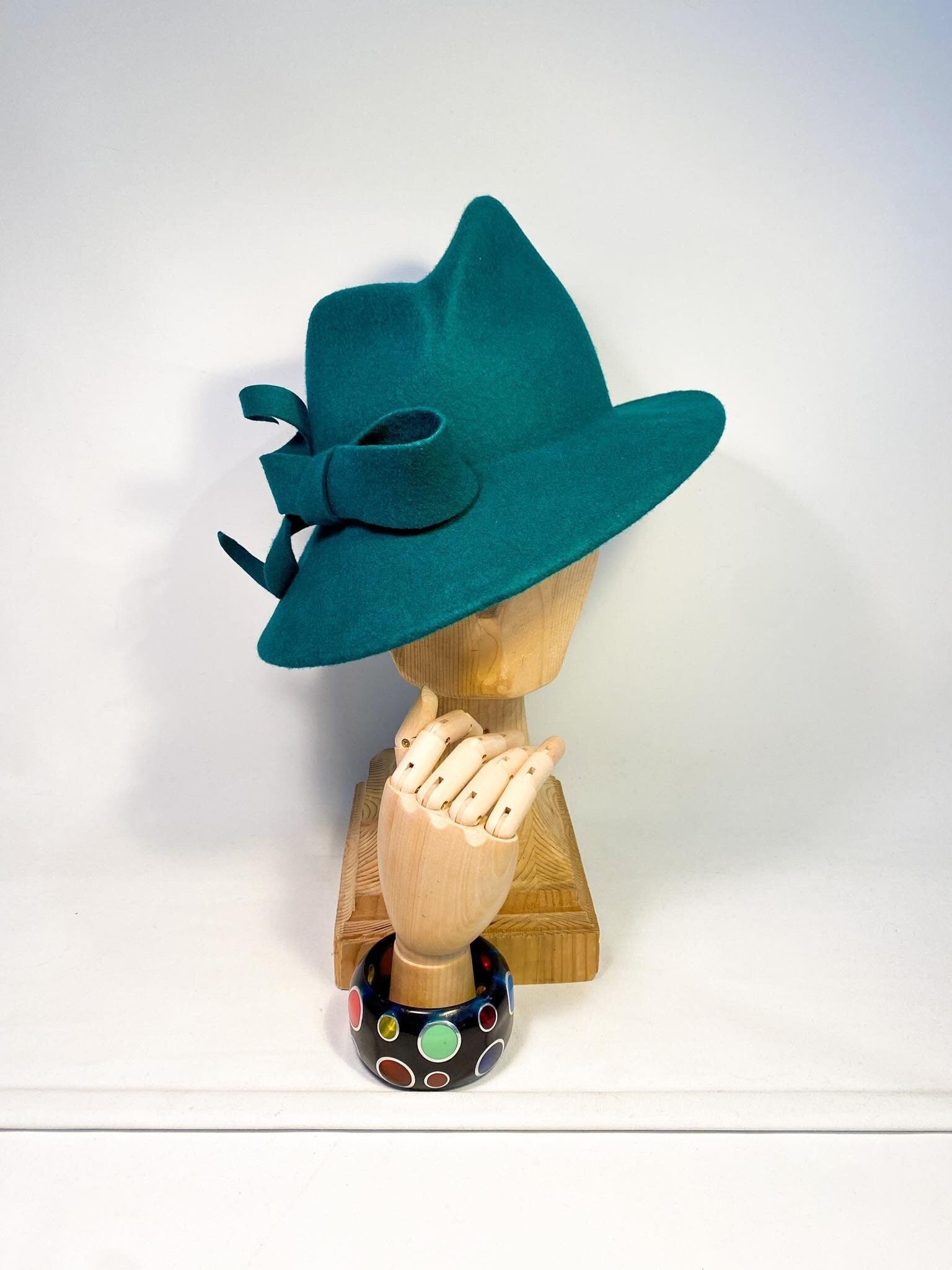 * Stunning asymmetric fedora hat from wool felt, stiffened and hand blocked over millinery wooden ha...