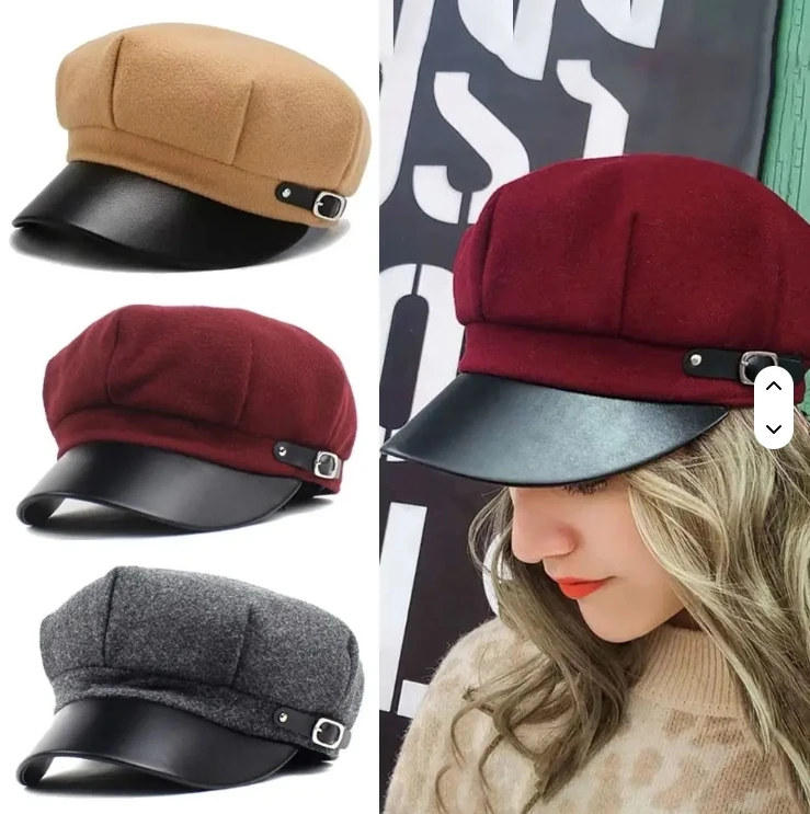 Autumn and Winter Women's Hats Solid Plain Octagonal Newsboy Hats M...