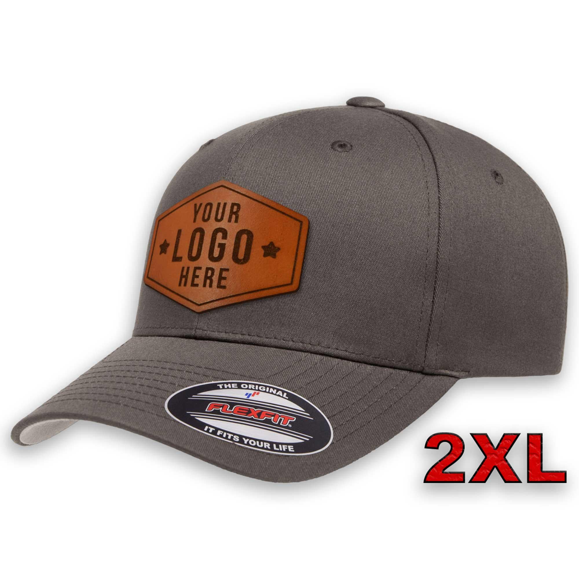 XXL Flexfit Custom Logo Hat, Company Logo Hat, Leather Patch, Laser...