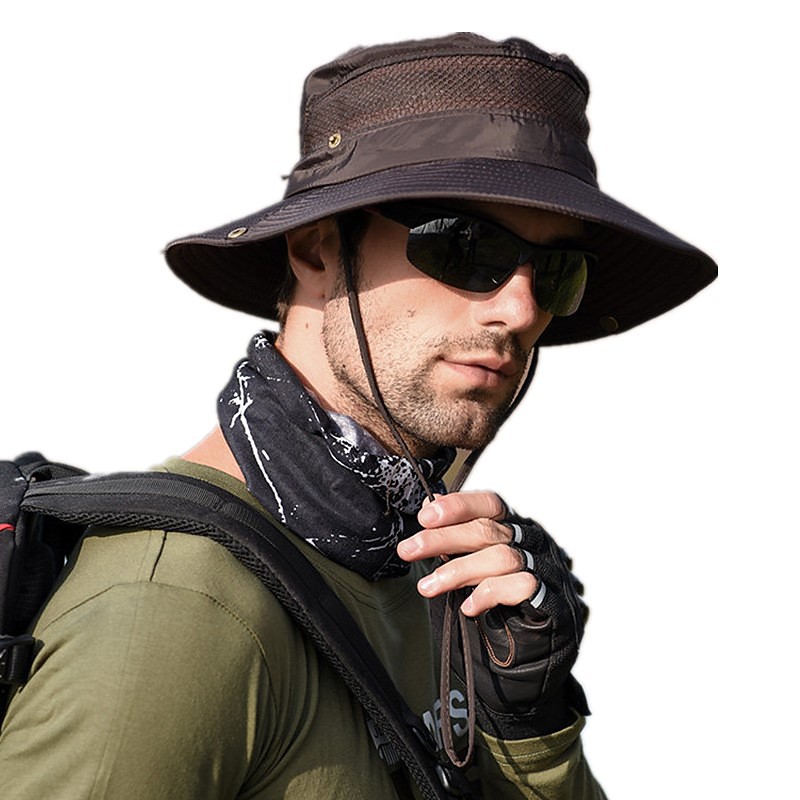 Summer Mens Breathable Sun Hat, Wide Brim Foldable Bucket Hat with ...