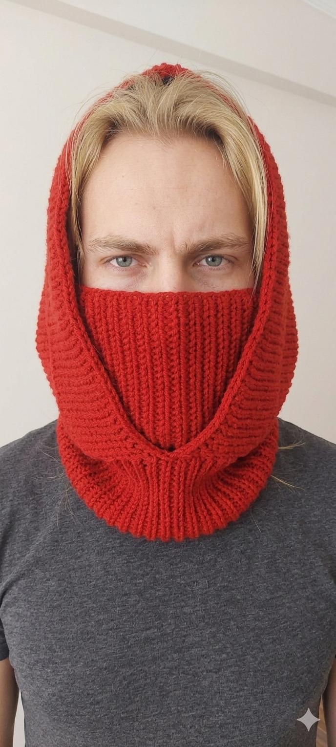 Trendy Merino wool knitted hood is the ultimate chilly days accesory. The balaclava drapes comfortab...