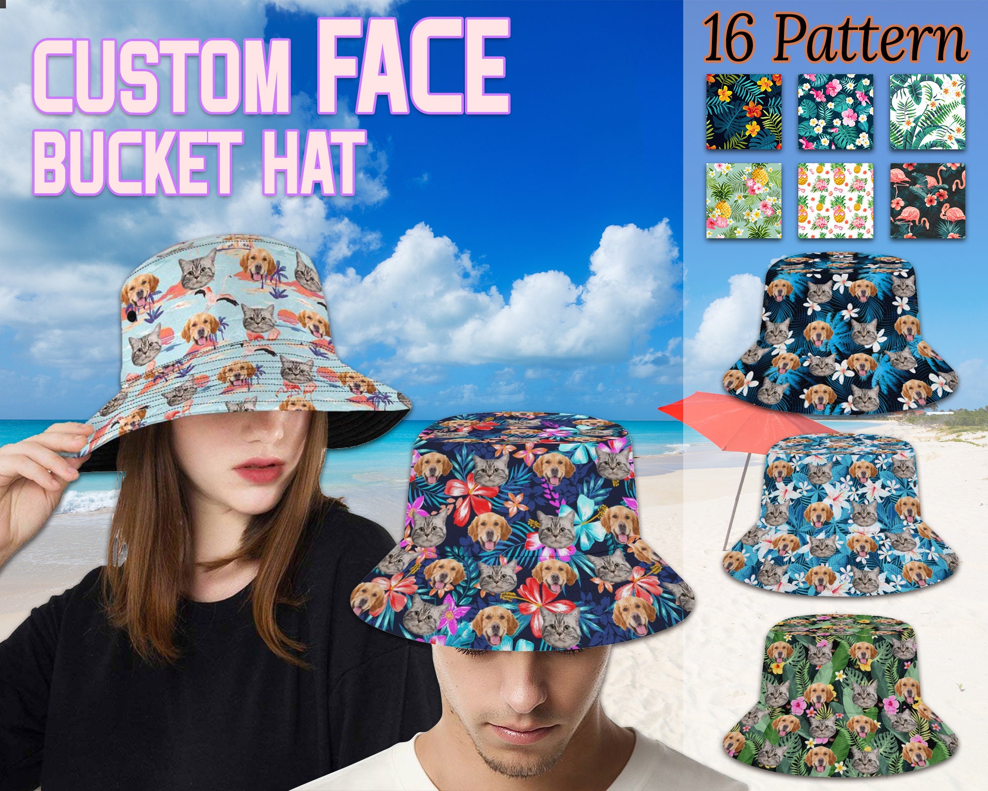 "Customize a personalized bucket hat with a photo of you/a photo of your pet, it would make a g...