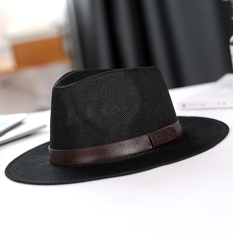 • Men's Linen Sun Hat Panama Flat Brim British Jazz Hat Sun Protectio...