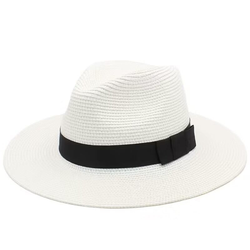 • Unisex Summer Sun Hat, Panama Straw Wide Brim UV Protection Hat, Be...