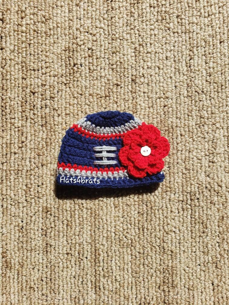 New England Patriots Football Hat, Baby Girl Patriots Hat, Crochet ...