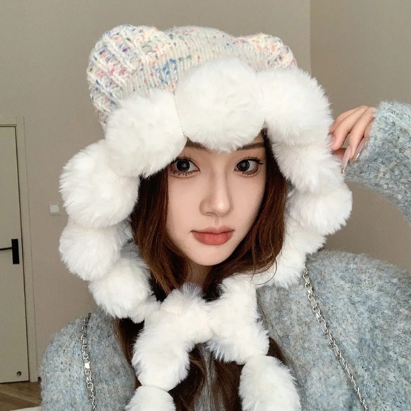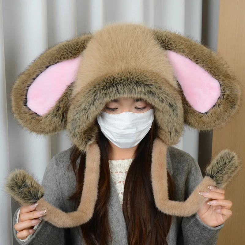 Faux Fur Hat Cute Rabbit Ears Plush Hat Women's Thick Warm Beanie H...