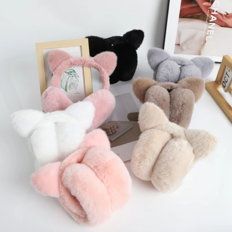 Cute Cat Ear Plush Earmuffs for Women Winter Warm Ear Protection Wi...