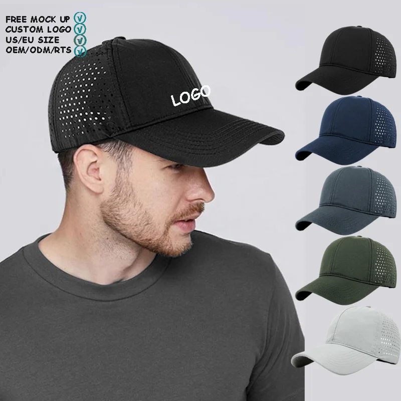 Custom Quick Dry Baseball Cap Curved Brim Snap back Hat Laser Cut M...