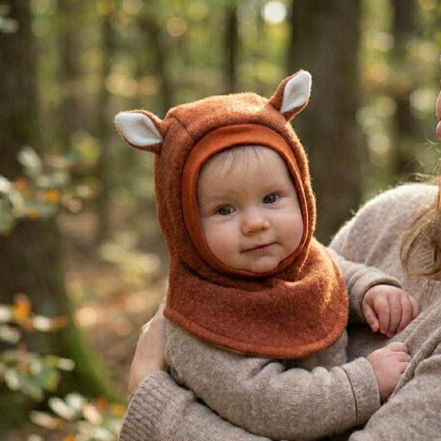 "A warm, fox-shaped hat made of boiled wool. Fully lined with soft cotton jersey. With this cut...