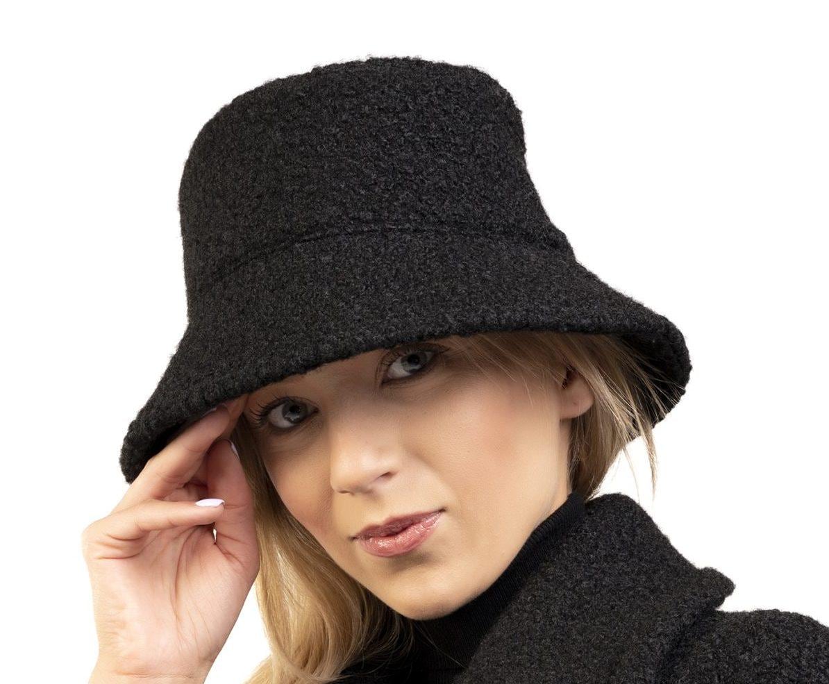 "Jet Black Winter Wool Bucket Hat Classic and Elegant, this Bucket Hat is made of Wool Boucle, ...