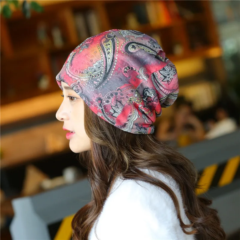 Autumn Winter Leather Patch Baggy Slouchy Cap Double Layer Turban H...