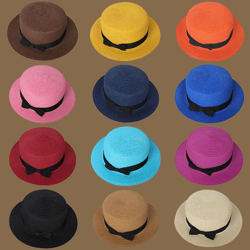 Spring and Summer New Straw Knitted Bow Straw Hat Korean Fashion and Leisure Foldable Beach Flat Top...