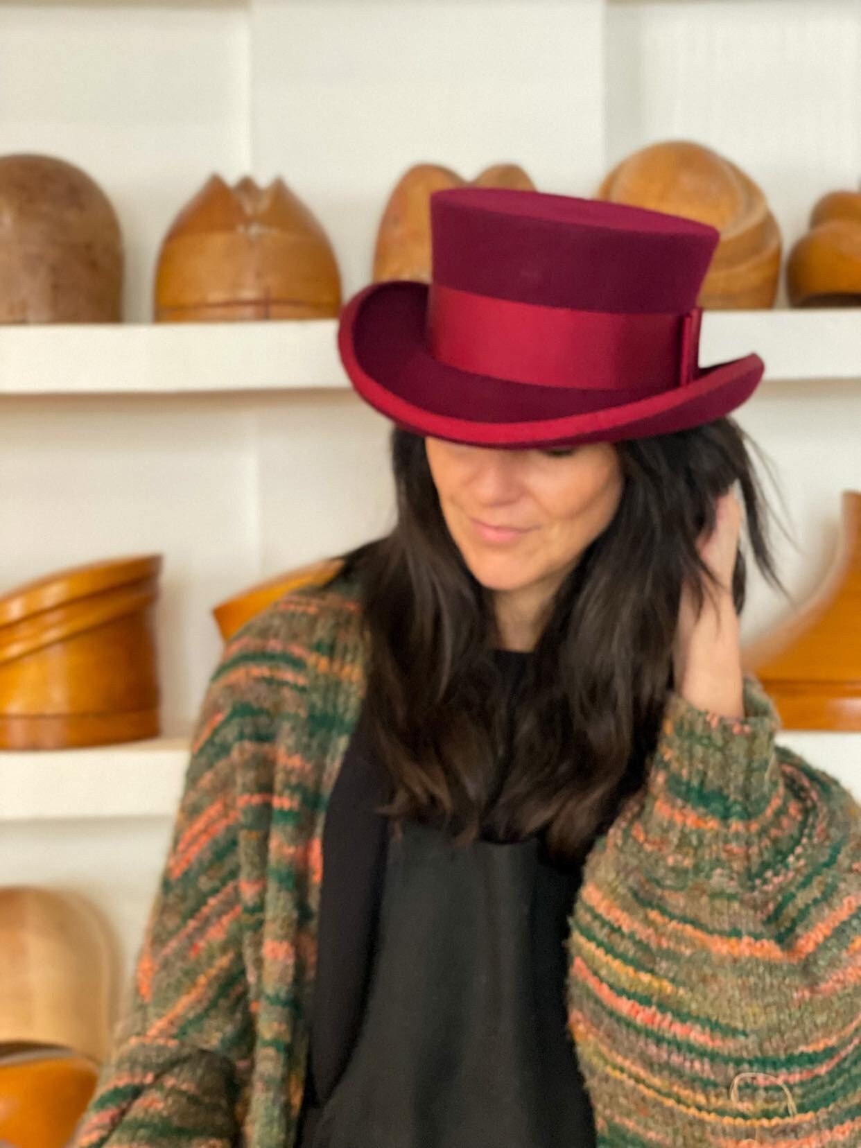 * Stunning medium low top hat from wool felt, stiffened and hand blocked over millinery wooden hat b...