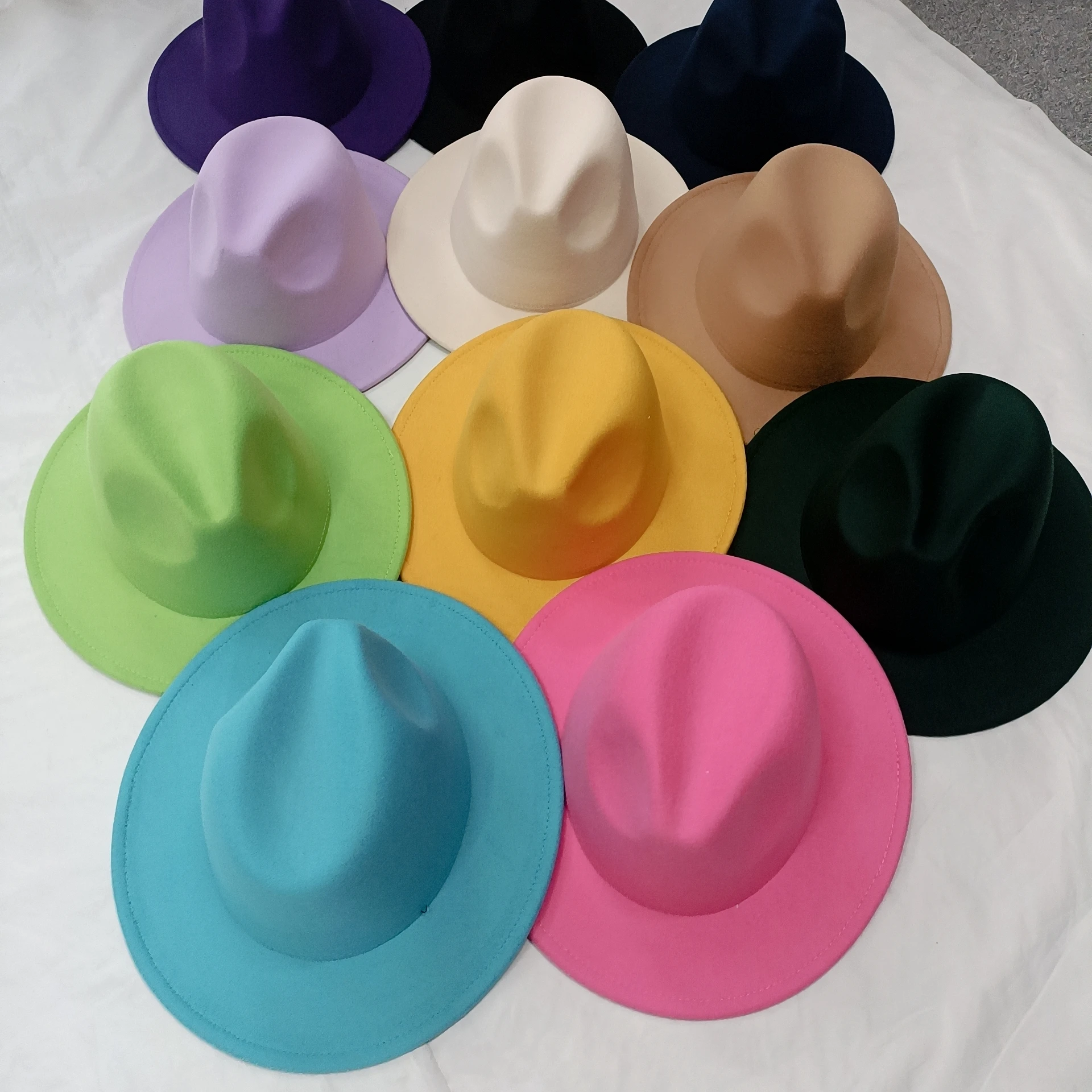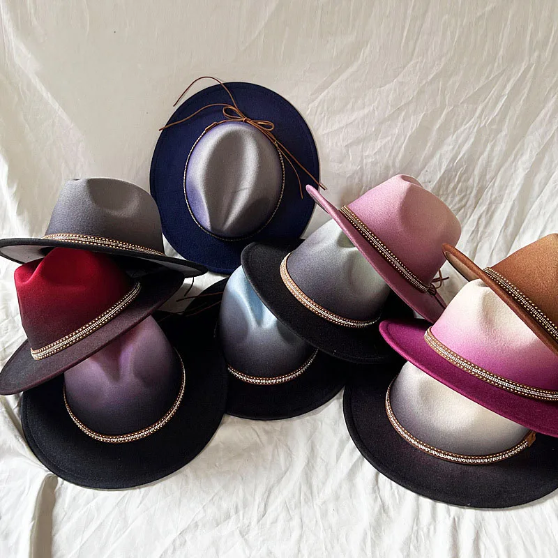 Gradient Color Ladies Hats Women Felt Fedora Unisex Two Tone Wide B...