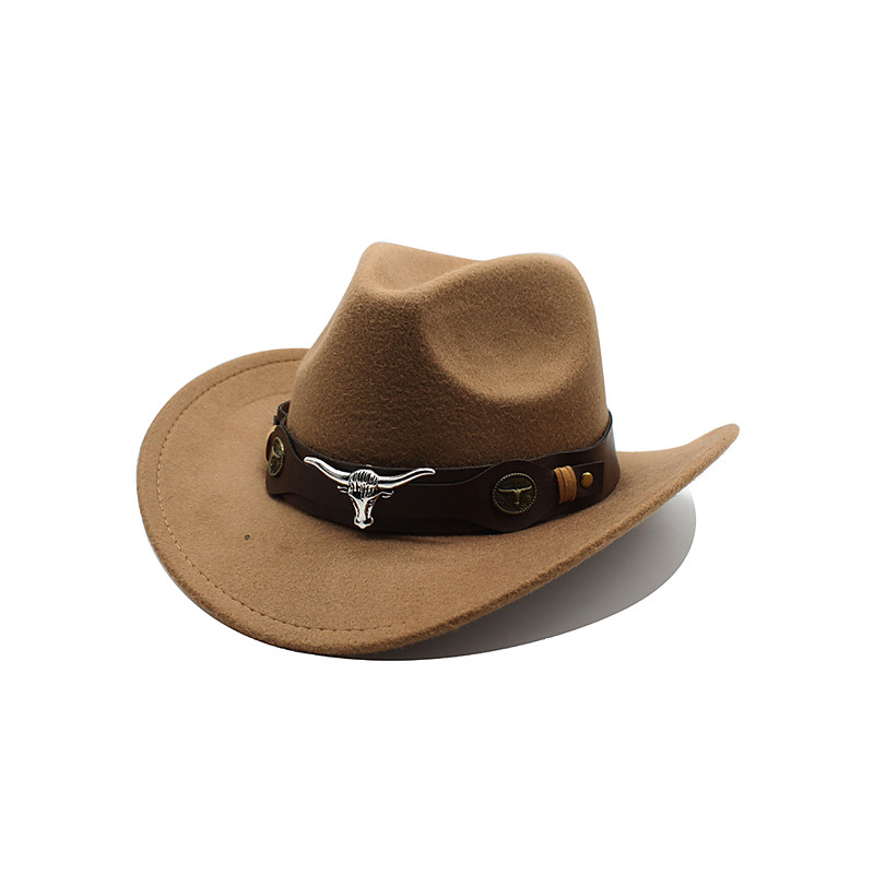 Men's Cowboy Western Hat with Bull Head Band – Vintage Wide B...