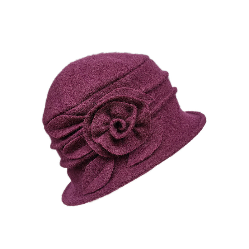 Women's Wool Winter Hat with Flower Design, Multiple Colors, Cozy a...