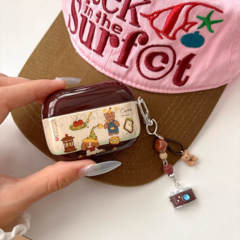 IMD Cartoon Bear Pattern Brown Earphone Cover Case with Pendant For Airpods Series, 1, 2, 3, 4,Pro, ...