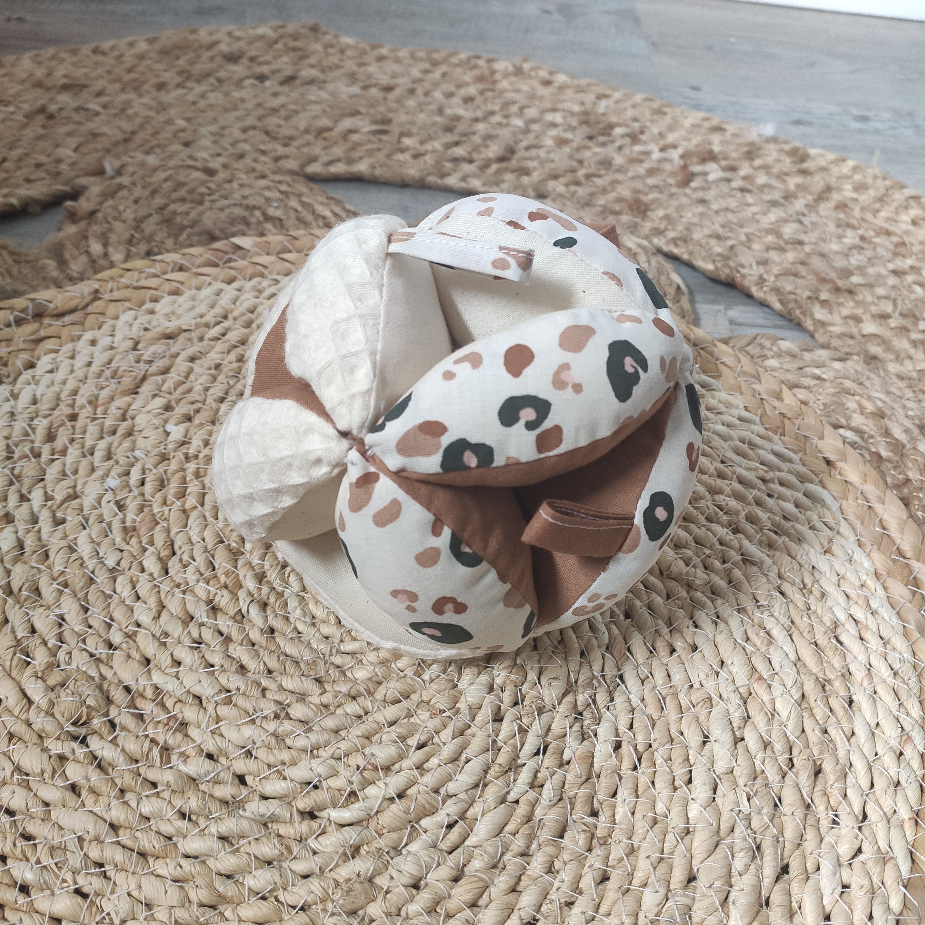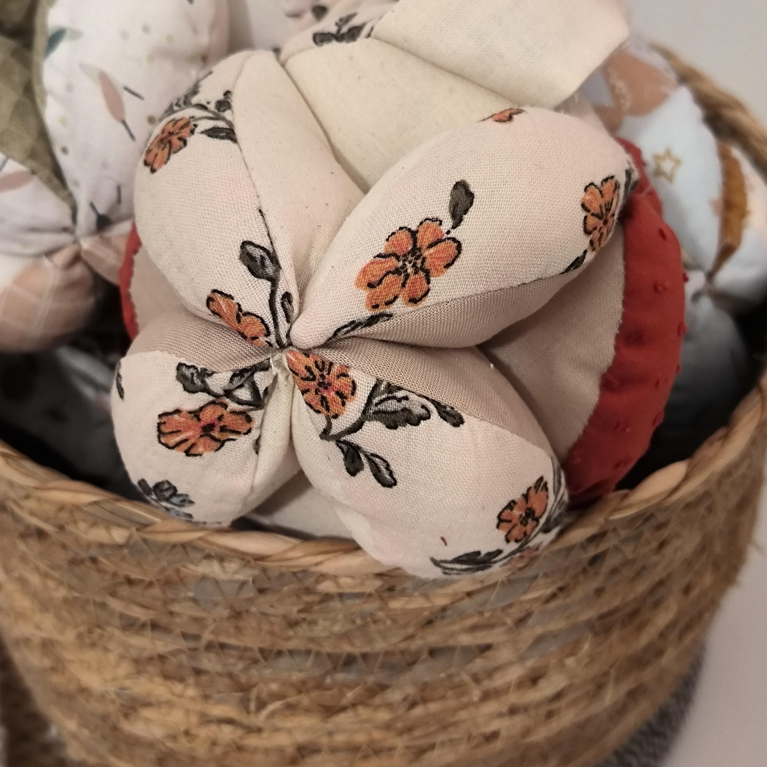 Montessori grasping ball with bell, decorated with flowers and polk...